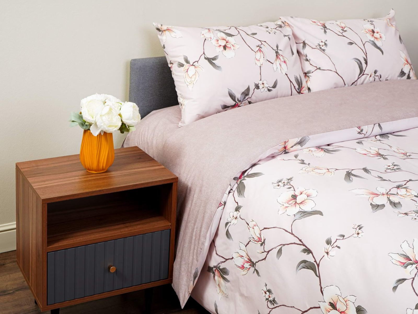 Комплект изготовлен из ранфорса, такая ткань отвечает всем современным стандартам и по уровню комфорта не уступает сатину. Ранфорс долговечен, лёгок и приятен на ощупь.