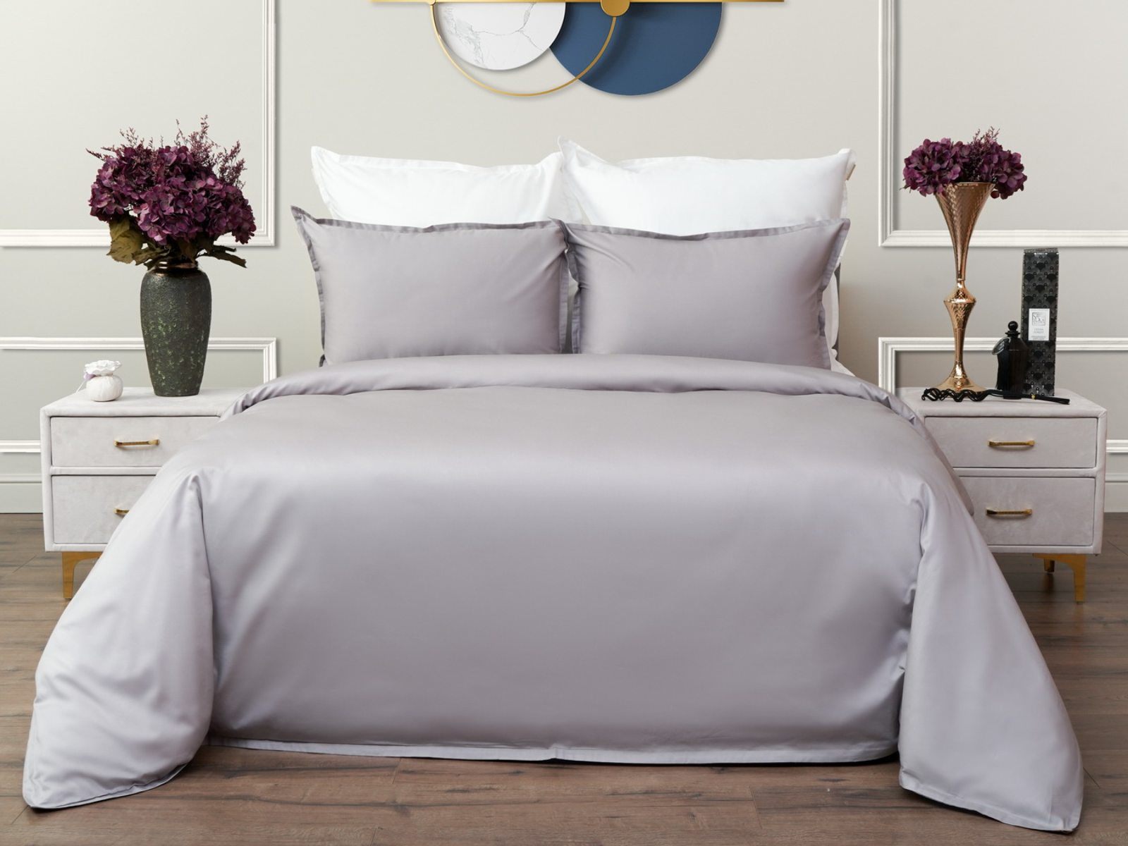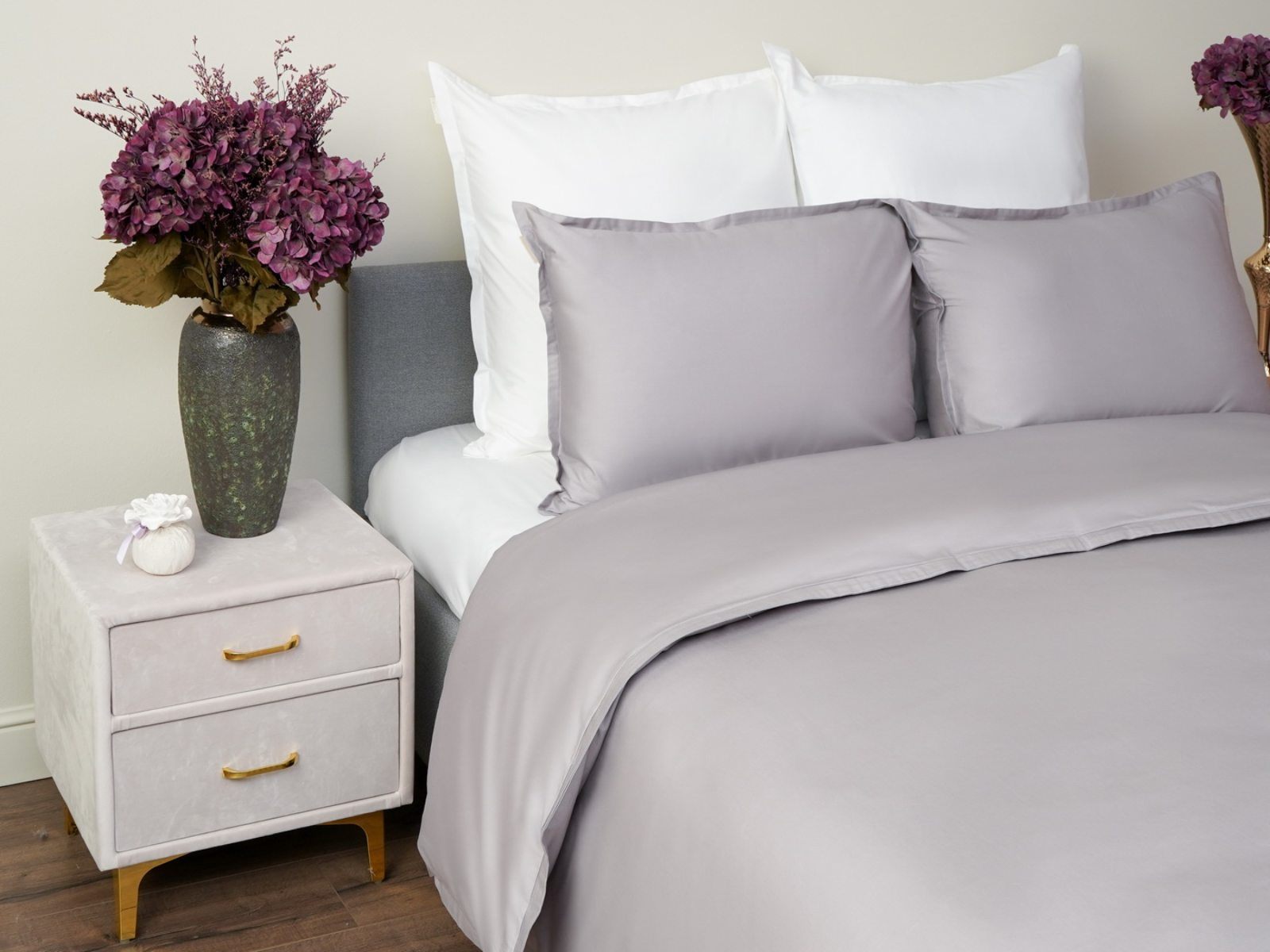 Особенность: наволочки и пододеяльник с ушками 2 см по периметру, пододеяльник на пуговицах;