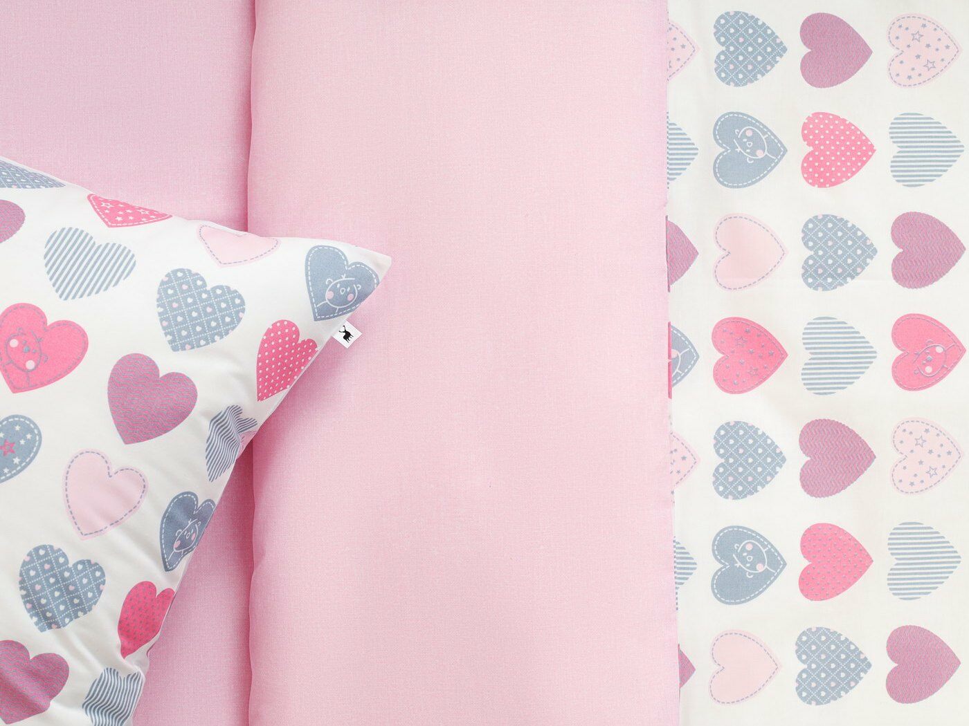 Пододеяльник –двусторонний: верх из ткани А (принтованная ткань), обратка из ткани В (однотонная рогожка), с потайной молнией.