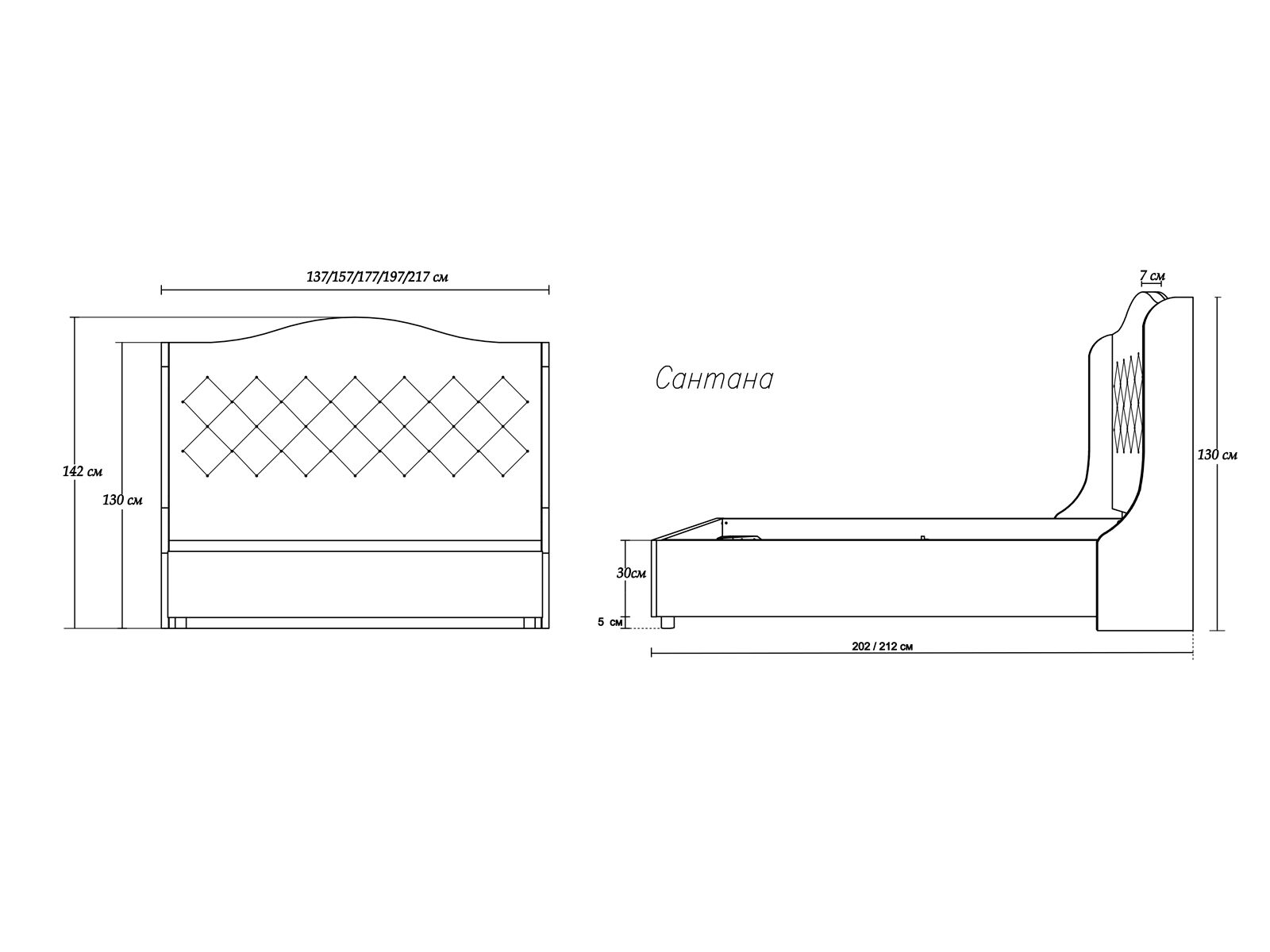 Кровать Сантана отличается классической эстетикой. Высокое изящно изогнутое изголовье словно заботливо оберегает вас от внешних воздействий и обеспечивает максимальный комфорт во время сна. Каретная стяжка и отделка декоративными пуговицами придают изделию особый шарм, изысканность и визуальную глубину.