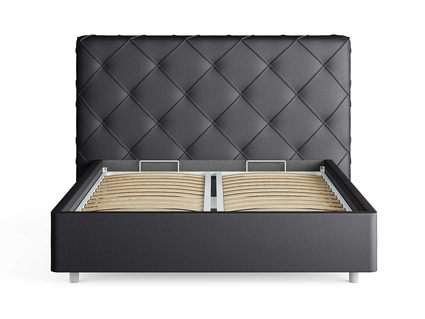 Кровать комплектуется металлическим основанием и подъемным механизмом со вместительным бельевым ящиком. Дно бельевого ящика легко сдвигается для обеспечения уборки под кроватью.