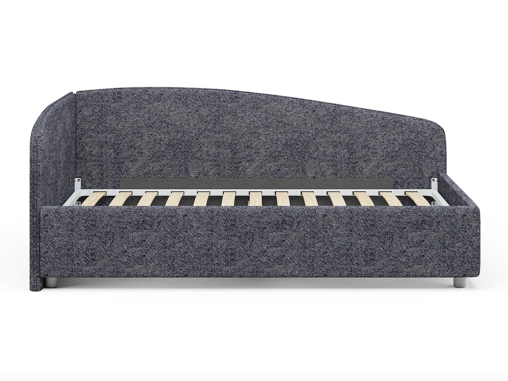 Кровать комплектуется металлическим основанием (без опор), которое имеет 13 рядов встроенных березовых ламелий на каждое спальное место, обеспечивая равномерное распределение нагрузки.