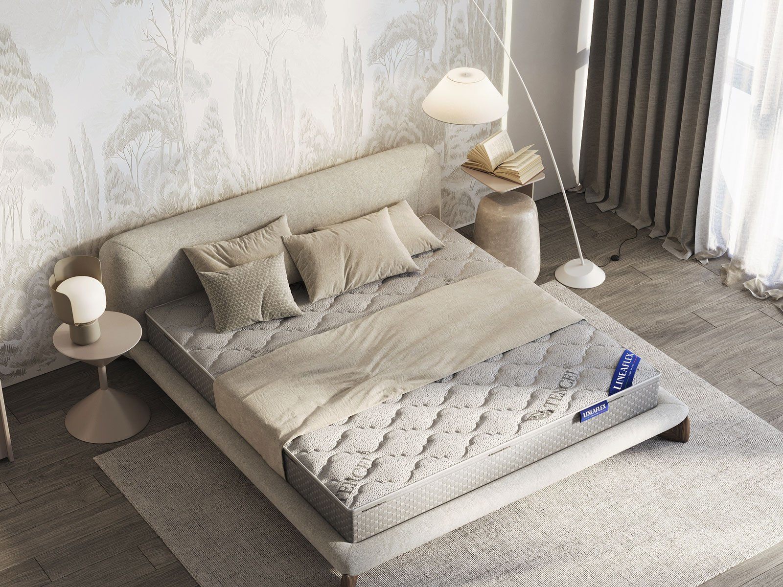 Матрас размещается в чехле Tencel fresh, состоящем из трёх слоев: трикотажное полотно, включающее в свою основу натуральное эвкалиптовое волокно, объёмный наполнитель холлофайбер, который необходим для мягкости и рельефа и слой из 3D ткани, обеспечивающий свободную аэрацию обивки.