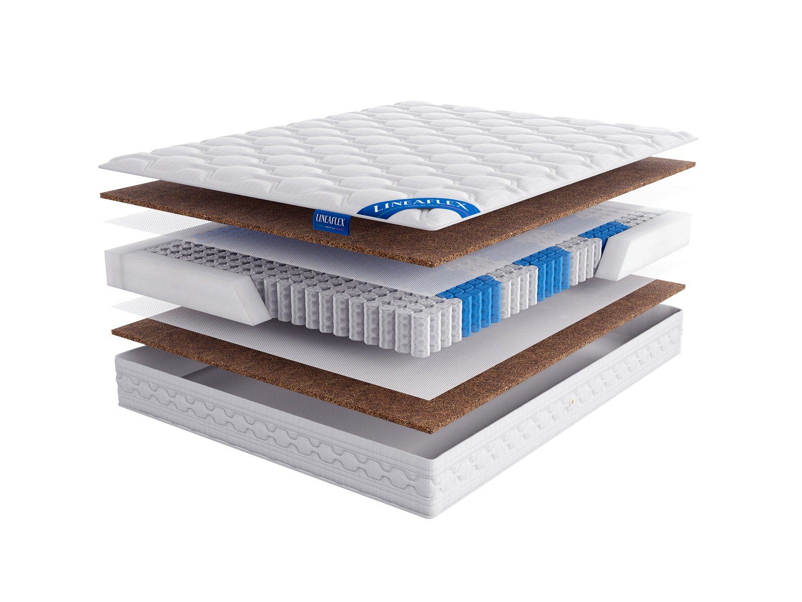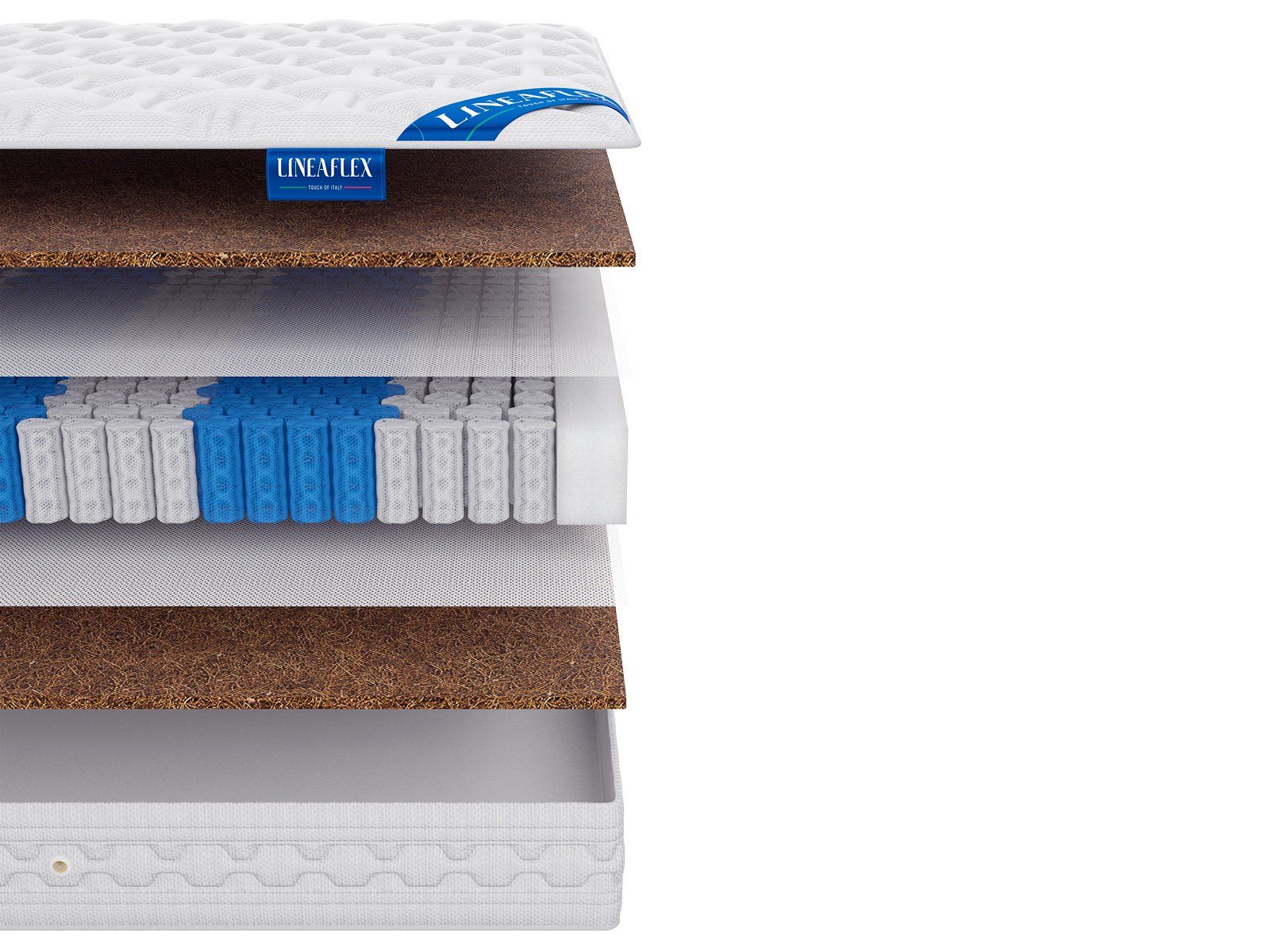 Особую высокую степень жёсткости матрас получает благодаря 3 см плитам латексированной кокосовой койры. Материал не просто твёрдый, он эластичный и гибкий, что позволяет слоям зеркально дублировать формы тела и при этом давать гармоничную поддержку. По этой причине кокос считают материалом с ярко выраженным ортопедическим эффектом. Материал используют для усиления поддержки матраса.