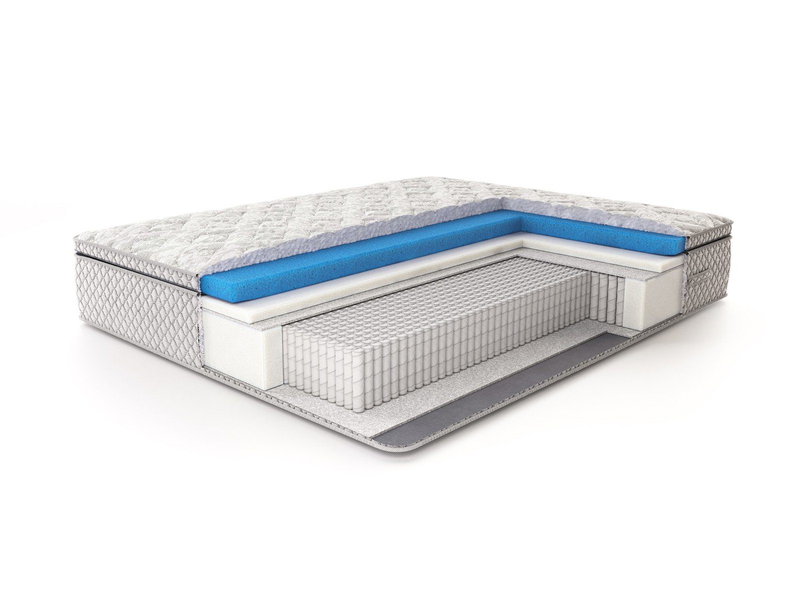 Роскошный рельефный чехол из жаккарда, простёганный по типу «слоёный пирог»: объёмное гипоаллергенное волокно холлкон 300 гр., ППУ 1 см, спанбонд — максимальный первоначальный комфорт. Чехол матраса несъемный.