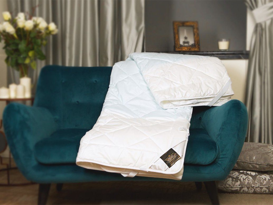 Белый стеганный ромбами наматрасник Cryo Night Topper с резинками по углам.