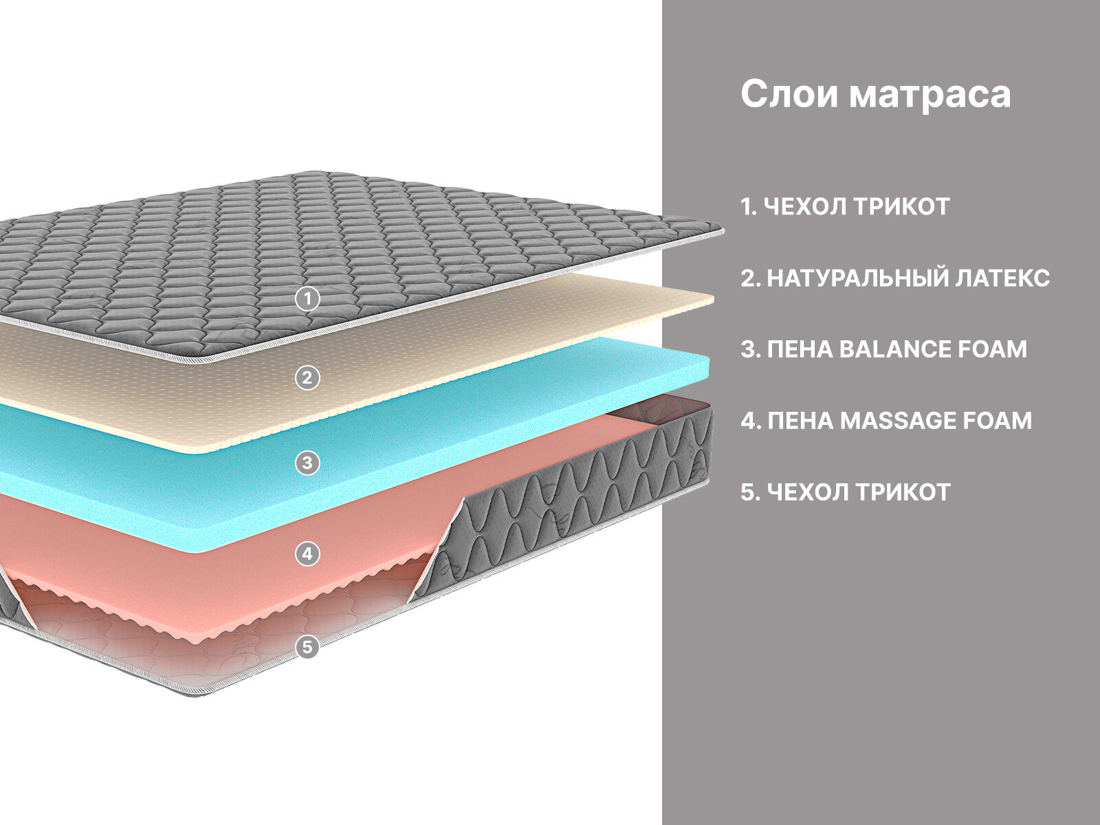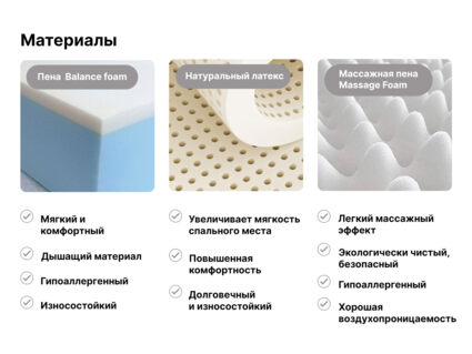 Массажная сторона представлена пеной Massage foam. Поверхность наполнителя получила специальную резку. Воздействуя на тело, такой слой усиливает кровообращение и расслабляет мышцы.
