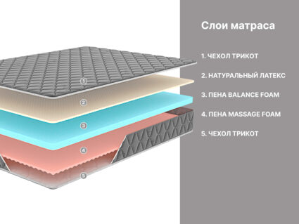 Базой для матраса служит пена Balance foam. Это упругий и плотный наполнитель, который хорошо удерживает фигуру и обеспечивает спине спящего правильное положение.