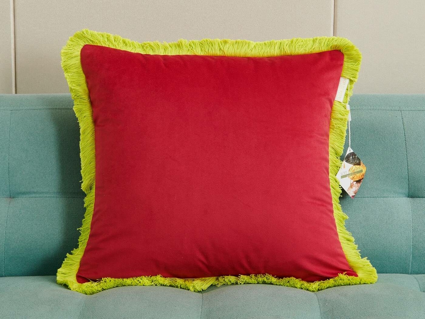 Коллекция пошита из мягкого и приятного на ощупь велюра плотностью 250г/м2. Наволочки с контрастной хлопковой бахромой добавят ярких акцентов и жизнерадостности в ваш интерьер. Большой выбор расцветок поможет расставить цветовой акцент и подчеркнет индивидуальность Вашей гостиной.