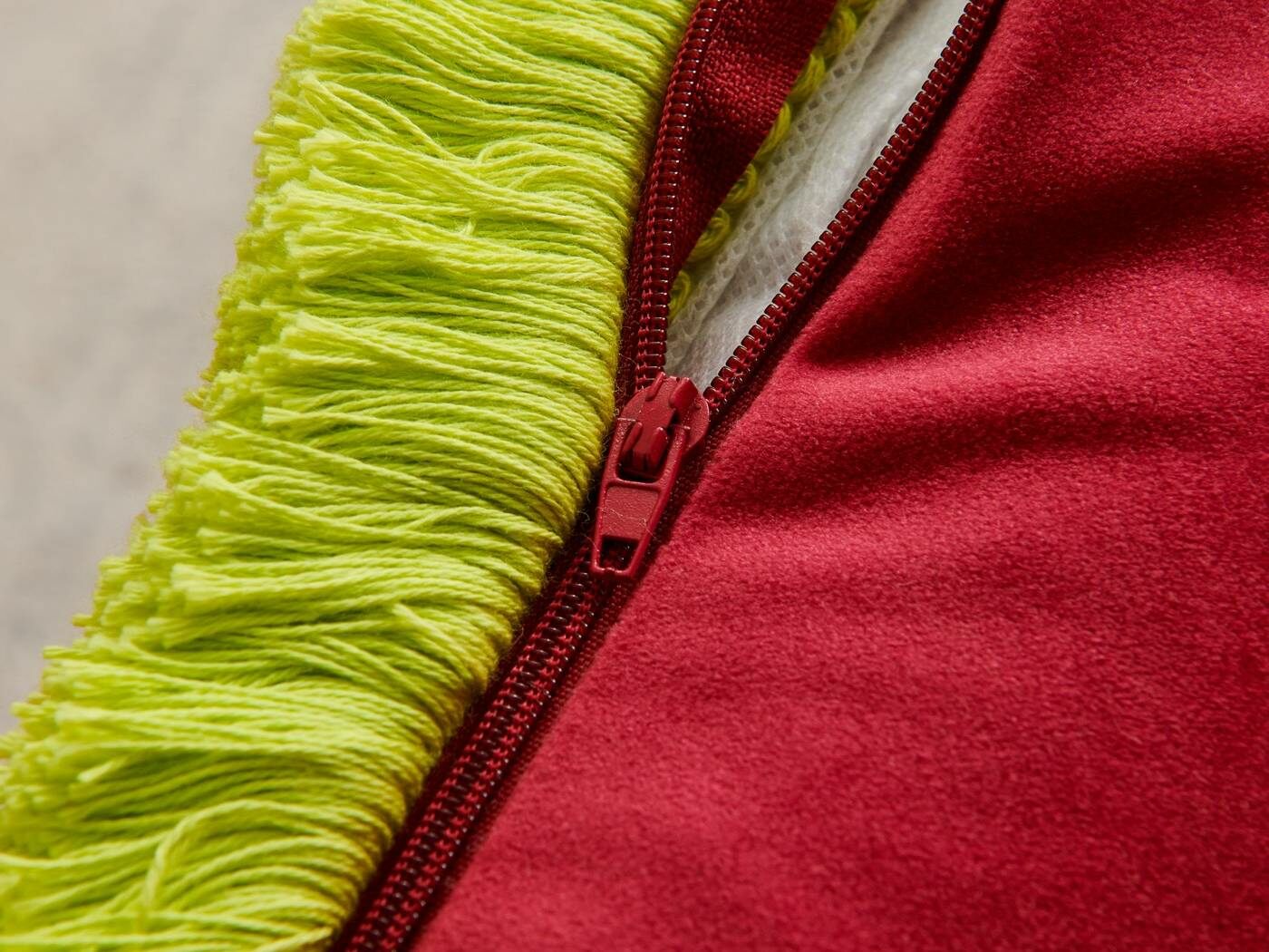 Особенность : с бахромой, потайная молния под цвет вшита в край наволочки.