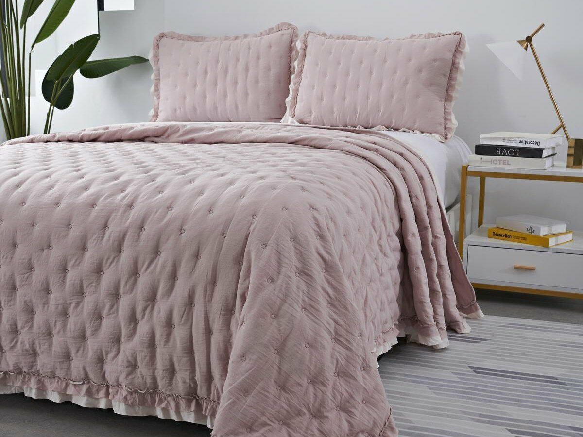 Покрывала выполнены в десяти оттенках, они подойдут для различных интерьеров, объединяет коллекцию потрясающее качество и приятный внешний вид. Изделия декорированы рюшами по краю, что подчеркивает из красоту и изысканность.