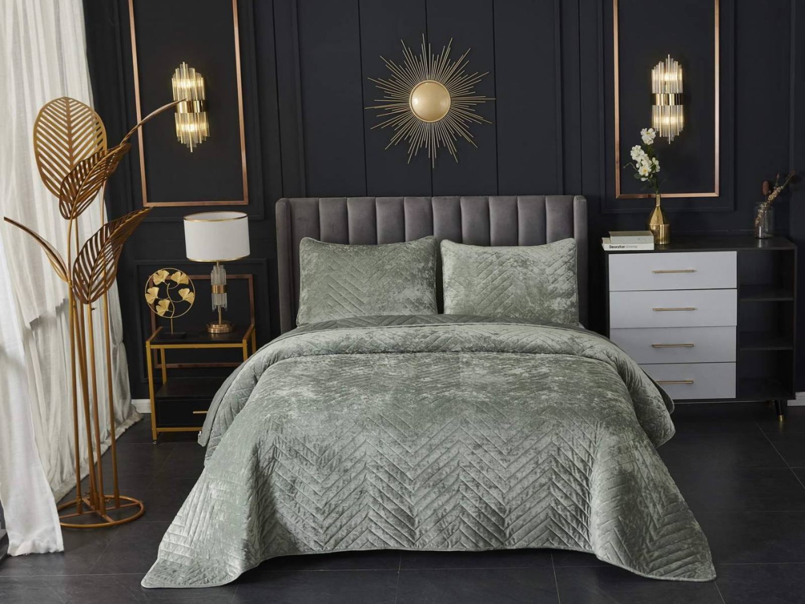 Покрывала Фернанд выглядят как будто сошли с картин, изображающих королевские покои. Бархатную ткань начали изготавливать еще в Средние века, её использовали в оформлении дворцов и изготавливали плащи и головные уборы для знати. Теперь и вы можете прикоснуться к этой роскоши! Бархатная текстура приятная на ощупь, а из-за особого плетения ткани, игра света на ней выглядит благородно. Поэтому покрывало Фернанд создаст необычайно уютную атмосферу в вашей спальне. Цветовая гамма разнообразна и включает восемь благородных оттенков: капучино, бежевый, изумруд, горчичный, терракотовый, пепельная роза, серый, стоун. За покрывалом Фернанд легко ухаживать: стирка при температуре 30 градусов, вручную или в машинке. Важно хорошо просушить изделие! При правильном уходе вещь прослужит долгие годы не потеряв форму и цвет.