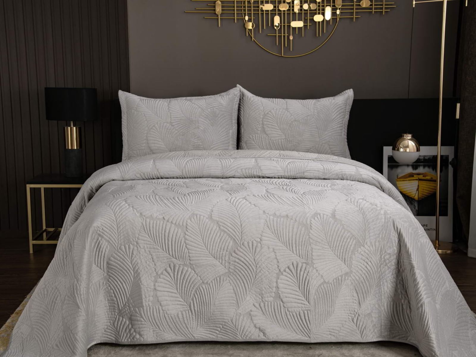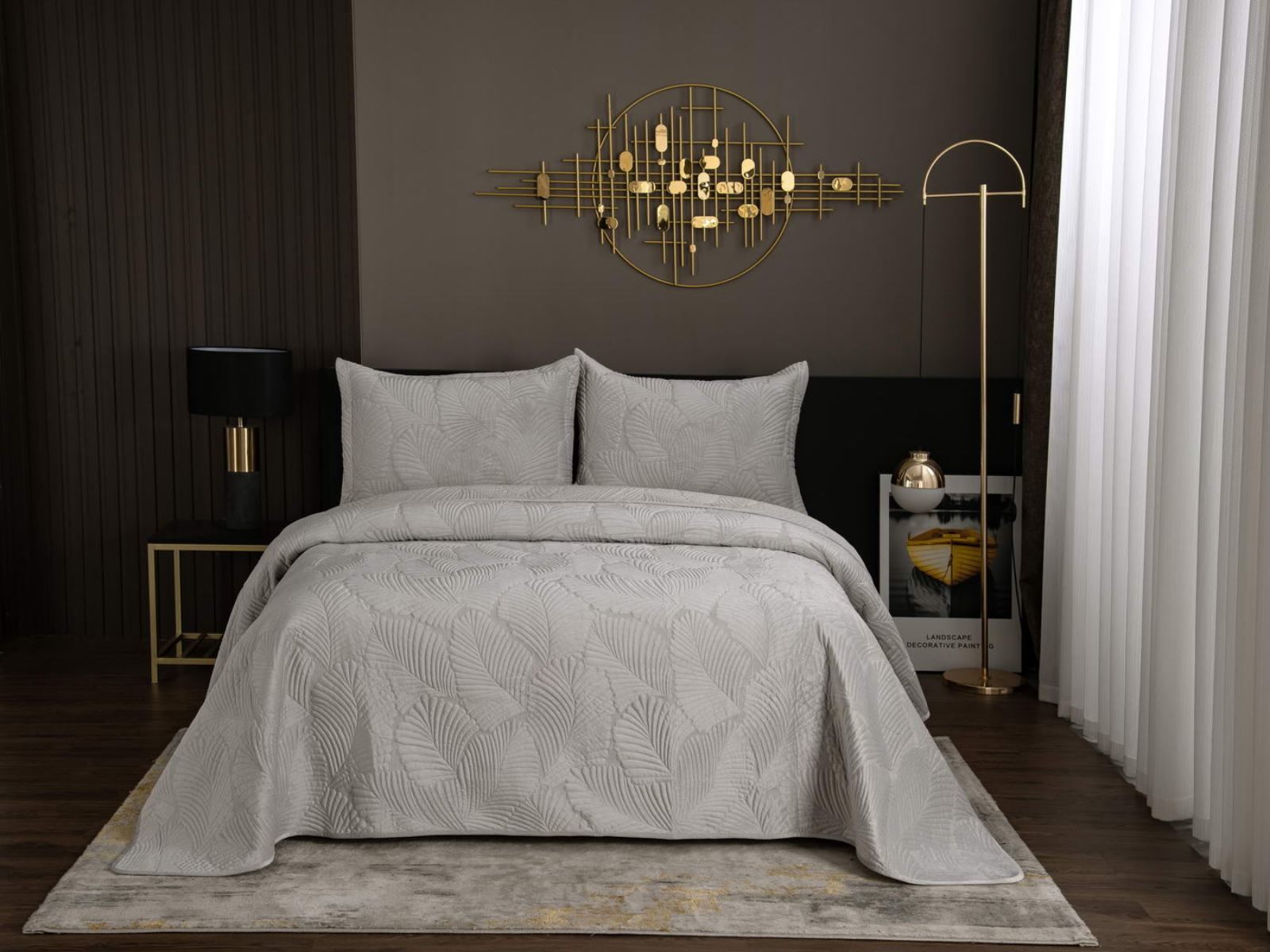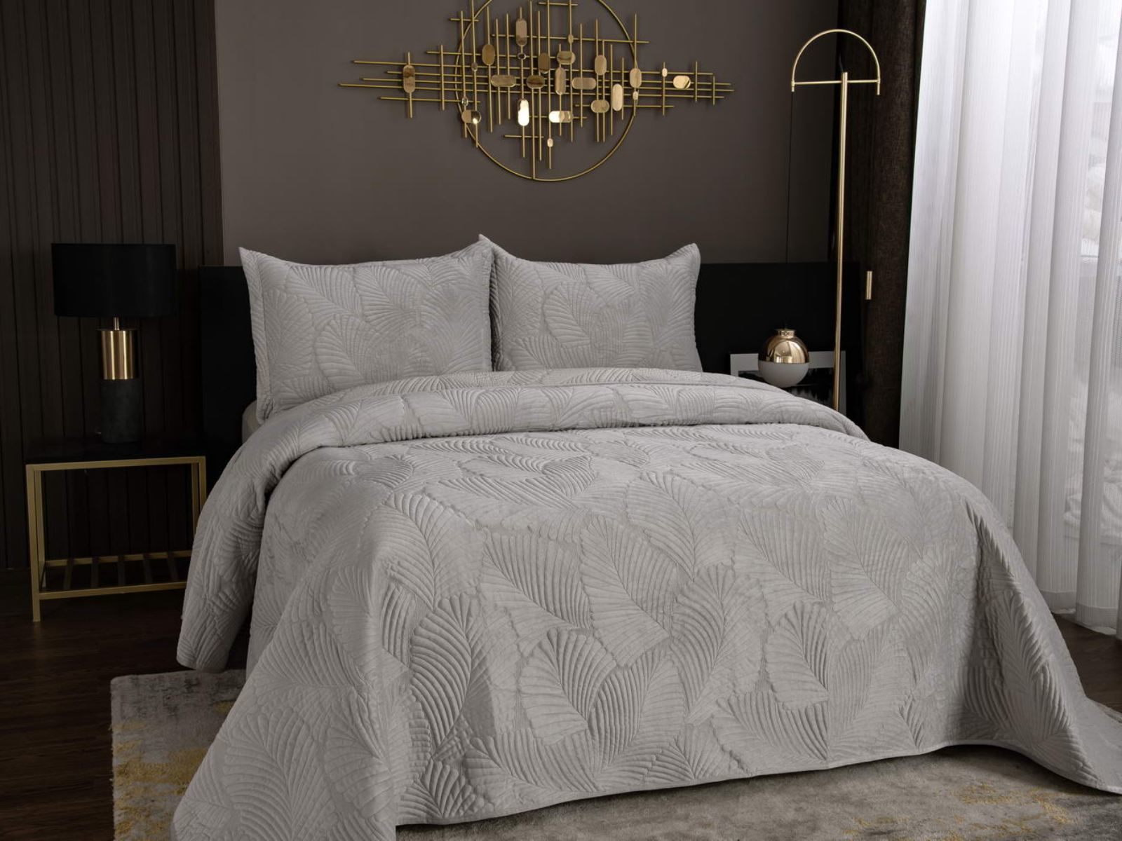 На создание велюрового покрывала Ноэль наших дизайнеров вдохновила ночь в середине лета, когда на раскаленную от жары землю спускается долгожданная прохлада. Роскошная вышивка в виде пальмовых листьев будет напоминать о тени, которую отбрасывают деревья.