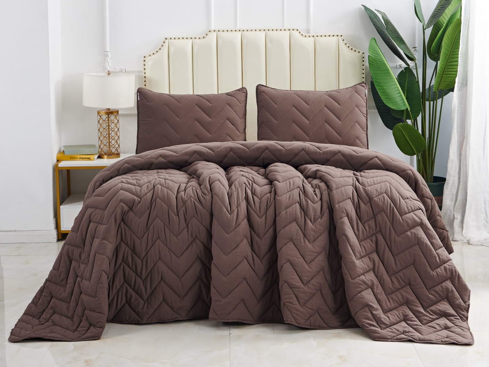 Выбрать покрывало так же важно, как выбрать обои в гостиную или плитку в ванную комнату. В современном мире при огромном разнообразии товаров порой бывает сложно остановиться на конкретном стиле или цвете. Если у вас возникла такая проблема, Sofi De Marko рекомендует приобрести покрывало с наволочками Робби. Эта легкая модель покрывала украшена изящным геометрическим узором. Изделие выполнено в семи оттенках: пепельная роза, крем, чайная роза, беж, мокко, шоколад, серебро. Такая цветовая гамма подойдет большинству современных интерьеров. Кроме того, покрывало возможно использовать в качестве летнего одеяла.