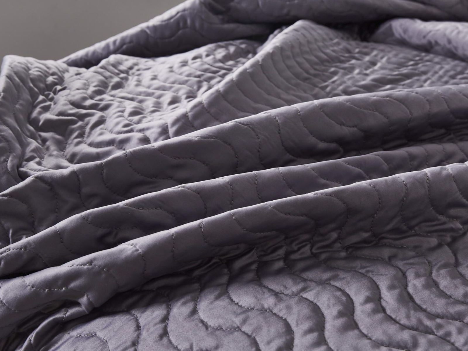 Коллекцию характеризуют сдержанные цвета с широкой палитрой сочетаний: серый, стоун, пудра, кофе, лаконичный волнистый узор, выступающий над поверхностью ткани, объёмная фактура, мягкость и гладкость атласного материала, деликатный кант по периметру изделия.