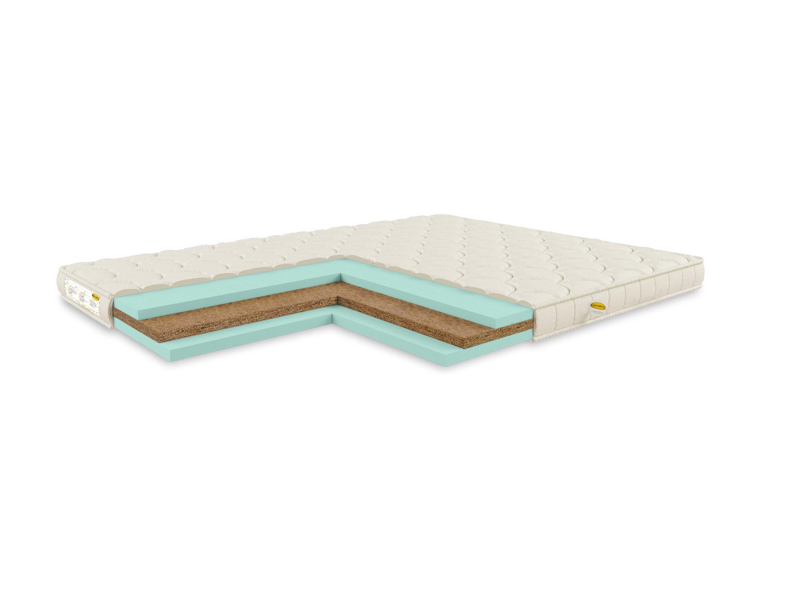 Внутри модели установлены два слоя искусственного латекса между которыми скрывается плита кокосовой койры. Такое расположение не случайно. Кокос – это жёсткий наполнитель, который обладает ярким ортопедическим эффектом. Убрать лишнюю некомфортную твердость и не потерять при этом качественную поддержку как раз помогает пена. Её эластичность и упругость подстраивает поверхности под анатомию человека. Таким образом матрас обеспечивает не только ортопедическую поддержку, но и анатомическую.