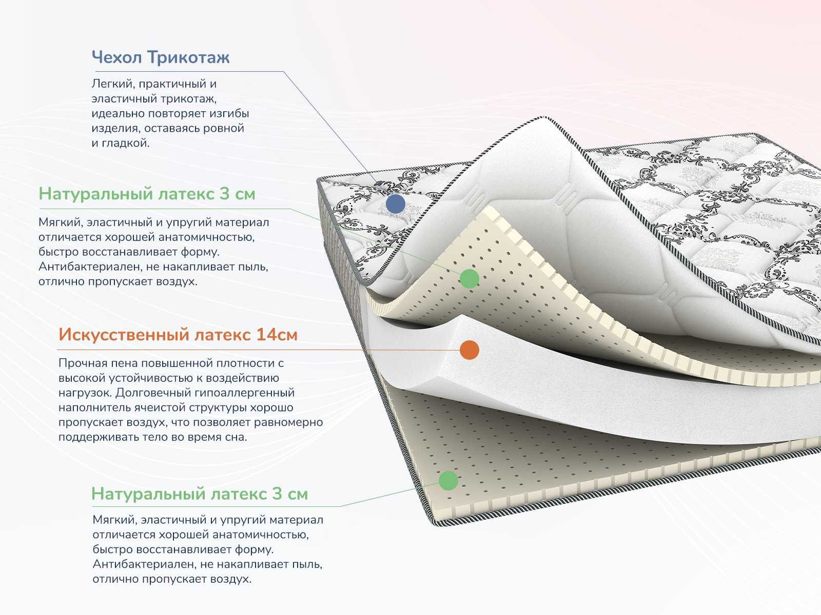 Модель сочетает в себе природный комфорт латекса, правильную поддержку ортопедической пены и практичный формат рулонной поставки, обеспечивая мягкое и комфортное спальное место.